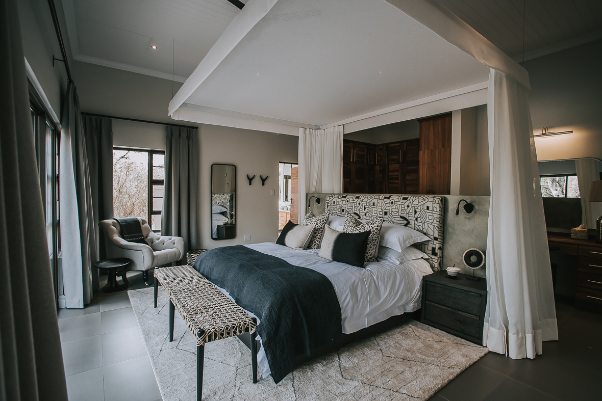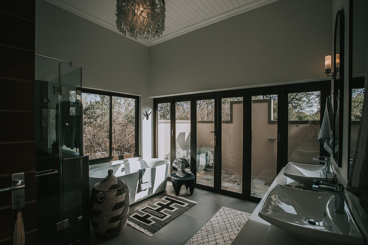 We refurbished this 5-bedroomed private home on a luxury wildlife estate in Hoedspruit, South Africa. The house has a guest cottage and a gentlemen's den.