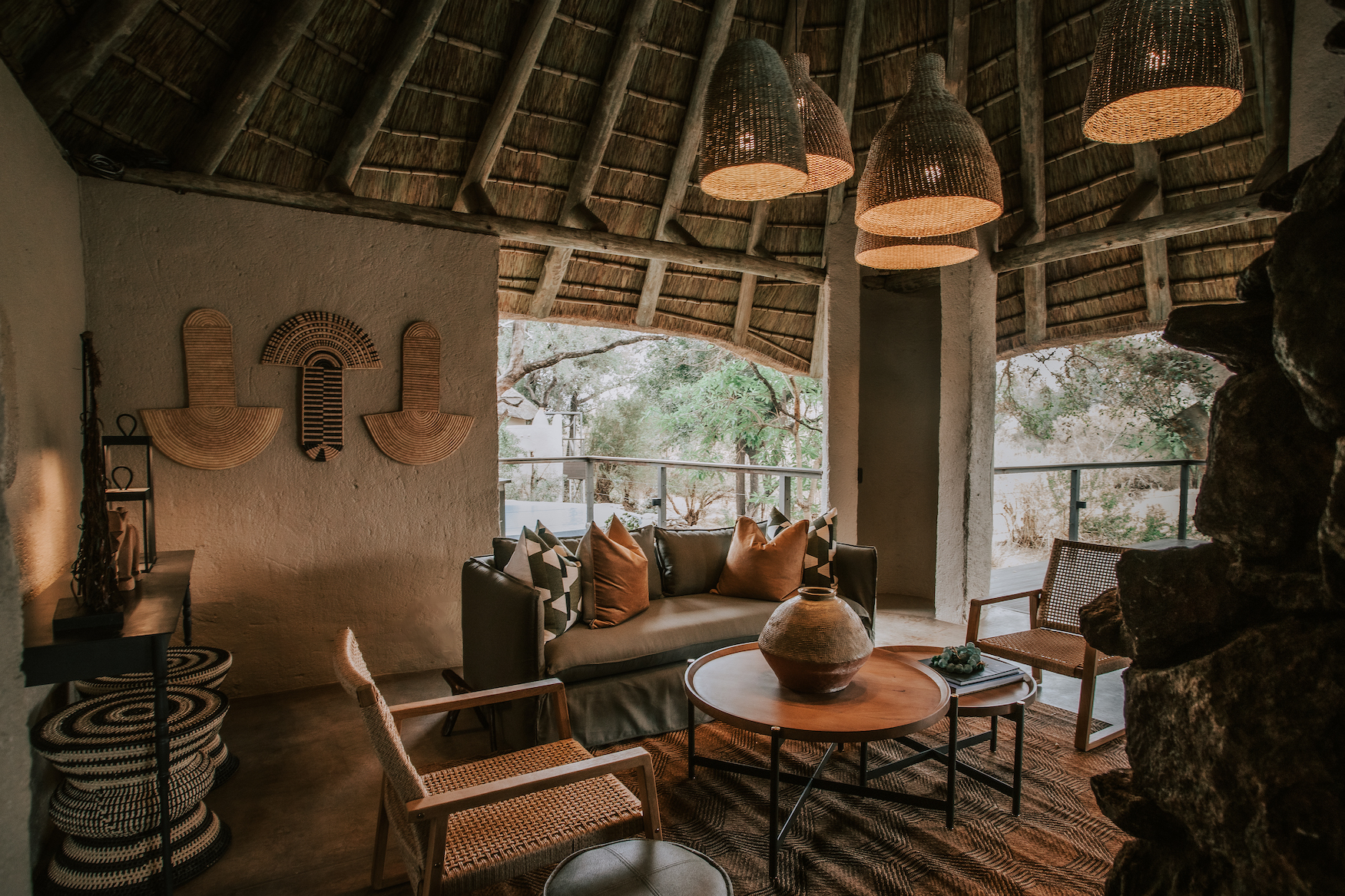 We completed the interior design for three of the River Camps at Makalali Private Game Reserve. The refresh focused on natural textures, warm tones, and carefully chosen décor that complements the surrounding bush landscape, creating inviting and comfortable spaces for guests to enjoy during their stay.